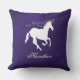 Transform your living space with this enchanting Dark Purple Unicorn Personalized Throw Pillow, a perfect blend of whimsy and elegance for unicorn theme home accents. This unicorn home decor piece features a mesmerizing star-filled night sky background, with a majestic galloping unicorn gracefully galloping with a radiant star trail following behind. The celestial theme evokes a sense of wonder, with elegant script to personalize with your name or gift recipient's name, ensuring this pillow is as unique as your style. This mythical design blends charm and sophistication, making it a must-have for unicorn enthusiasts and celestial dreamers alike. Perfect for cozying up your sofa, bed, or favorite armchair, this throw pillow elevates your decor with magical allure.