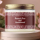 A waterproof label for cosmetics and/or soap products featuring a dark red abstract pattern. Customize it with your business and product information. This label measures 8.25 inches by 1.75 inches (209 mm by 44 mm) and is suitable for jars with a diameter of 2.6 inches (66 mm) or more and a label height area of at least 2 inches (50mm). Most 8 oz (240 ml) and 16 oz (480 ml) jars fit this description, but check the jar specifications to be sure. This label makes a great choice for packaging beauty products that require larger labels like sugar scrubs, body butters, and thick lotions and creams.