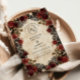 Make a bold statement with this dark and romantic wedding design, featuring deep crimson roses, intricate black lace accents, and vintage botanical details. Perfect for gothic, moody, or Victorian-inspired celebrations, this floral design adds an air of timeless elegance to your special day.