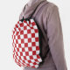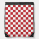 A drawstring bag designed with a dark red and white checkered pattern. Customize the red background color, pattern size among other options.