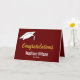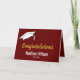 On the front, this dark red and white graduation card has a white graduate's cap in the upper left corner. The display text says 'Congratulations' in faux gold script. On the card's front, there's a place for the graduate's name in white text. You can even add the class of year under the name. Inside of the card, there's an inspirational message. Also, you can add the graduate's name and your name as the sender.