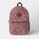 White vintage paisley with a dark-red custom background—customizable optional monogram.