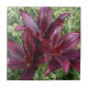 Ceramic tile that features a photo image of dark red Asiatic Lilies against a background of green Sedum plants. A lovely, floral design! Select your tile size. Makes a great kitchen trivet!