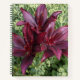 Spiral bound notebook that features a front and back cover photo image of blood red Asiatic Lilies against a background of green Sedum plants. A lovely, floral design! Select your notebook style options.