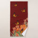 Dark Red Butterflies & Tulips Bath Towel Set