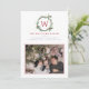 Dark Red Christmas Berries Wreath Holly Monogram Holiday Card