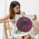 Details and colors shine with vibrancy with this square, metal art print that features the photo image of a gorgeous, dark red Dahlia bloom. A lovely, floral image! Select your metal print size.