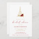 Dark Red & Gold Floral Eiffel Tower Bridal Shower Invitation