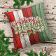 Beautiful, unique, classic, trendy, pretty and decorative Christmas holiday greeting cushion with a classic Holiday dark red, forest green, and white colored 'Merry Christmas' quote text on a rustic weathered wooden country cottage farmhouse style planks pattern background.