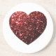 Dark red heart faux glitter sparkles coaster