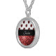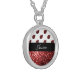 Dark red ladybug faux glitter sparkles Monogram Silver Plated Necklace