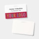Personalize our professional PVC name badge with your company logo, employee name, job title, or other custom text. Available with a lanyard, metal clip, or retractable reel. Designed in dark red and other colors with a modern minimalist design by MISOOK. All colors are customizable. The dimensions are 3.38 inch x 2.13 inch. No minimum order quantity and no setup fee.