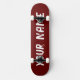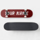 Skateboard deck featuring a rich dark red design with customizable name space. Perfect for street skating, tricks, or as a bold and personalized gift for skateboard enthusiasts.