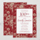 Dark Red Toile Floral 100th Birthday Party Fall Invitation
