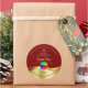 The design features a noble shimmery wavy gold decoration with soft glitter stars and a dark red background.