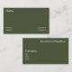 Minimalist business card in dark , rich green background . This color is called chive . It comes with light gray fonts . Personalize both sides now . You can edit the colors - you can add more info - image /logo etc .It comes 100 in a pack .