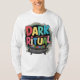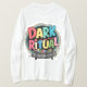 A fun and quirky illustration for a t-shirt design with the text "Dark Ritual" spelled out in vibrant, multi-colored, and playful fonts. The typography is set in a circular shape, with each letter in a different color. The background features a cartoony cauldron bubbling with a variety of colorful, comical potion ingredients. The overall design is lighthearted and amusing, making it perfect for a fun t-shirt.,👕✅