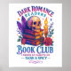 Vibrant, colorful design featuring a stack of books with a skull on top, feathers, lit candle dripping wax, and a rose. The colorful text reads: "Dark romance readers book club. I prefer my fairytales dark and spicy". This design is available on a wide variety of products.