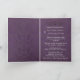 Dark purple damask sets a rich tone for this delightful goth themed wedding invitation. A matching border with beautiful detail frames your photo. Lovely rose with a sprinkle of dark glitter add a special touch. Upload your photo to replace this placeholder photo. All text front and inside is fully customizable by you.