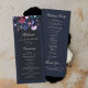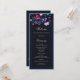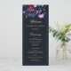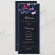 A floral arrangement of dark moody florals in jewel tones frames this stunning wedding program with a dark romantic theme. A dark navy background and rich black arch are the background for classic typography and touches of elegant calligraphy in a gold hue (digital effect, not real gold). A perfect choice for couples who love the dark romance wedding vibe and the jewel tone aesthetic. A dark and moody wedding program that infuses hints of color and gives a wide range of color choices to match a black wedding gown. Elegant and romantic, this is a modern classic wedding program is for lovers of floral paintings in the style of Dutch masters, gothic weddings, dark wedding designs, moody dark romance and dark romantic florals in jewel tones.
