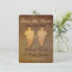 Two grooms hold hands in this rustic Save the Date pre-invitation card for a gay wedding. Alert your family and friends that they might clear their calendar for your big day.