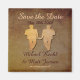 Two grooms hold hands in this rustic Save the Date gay wedding magnet. Alert your family and friends that they might clear their calendar for your big day.
