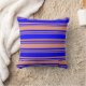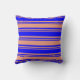 This throw pillow design features a dark salmon and blue colored stripes pattern.