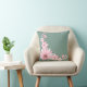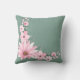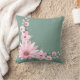 Dark Sea Green & Pink Floral Throw Pillow