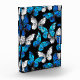 Realistic, blue and white butterflies seamless pattern on black background.