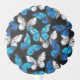 Realistic, blue and white butterflies seamless pattern on black background.