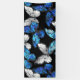 Realistic, blue and white butterflies seamless pattern on black background.