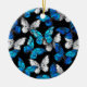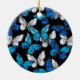 Dark Seamless Pattern with Blue Butterflies Morpho Ceramic Ornament