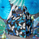 Realistic, blue and white butterflies seamless pattern on black background.