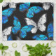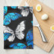 Dark Seamless Pattern with Blue Butterflies Morpho Kitchen Towel