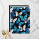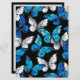 Realistic, blue and white butterflies seamless pattern on black background.