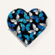 Realistic, blue and white butterflies seamless pattern on black background.
