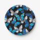 Dark Seamless Pattern with Blue Butterflies Morpho Paper Plates