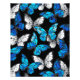Realistic, blue and white butterflies seamless pattern on black background.