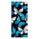 Realistic, blue and white butterflies seamless pattern on black background.