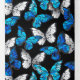 Realistic, blue and white butterflies seamless pattern on black background.