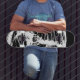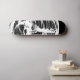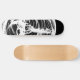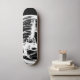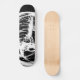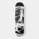 a grunge designed black and white skateboard