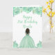 This birthday card features faux glitter mint green floral flowers and a beautiful princess with dark skin and an elegant dress. This is perfect for a birthday party.