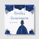 This Quinceanera guest book features faux glitter navy blue floral flowers and a beautiful princess with dark skin and an elegant dress. This is perfect for a Quinceanera birthday party.