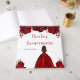 This Quinceanera guest book features faux glitter red floral flowers and a beautiful princess with dark skin and an elegant dress. This is perfect for a Quinceanera birthday party.