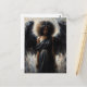 This postcard features impressionistic artwork of a Black angel girl with black wings, her eyes cast downward, evoking introspection, peace, and timeless wisdom. Dressed in a flowing, black Grecian-inspired gown with gold accents, she radiates quiet strength and ethereal grace. Her natural hair is crowned with a delicate gold laurel, symbolizing divine presence. The background blends moody tones of charcoal, ivory, and soft golds, creating a dramatic contrast that enhances the celestial energy of the figure.