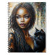 Notebook features artwork of a beautiful brown-skinned woman holding a black cat.