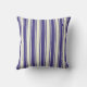 This throw pillow design features a striped pattern having colors like dark slate blue and beige.