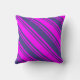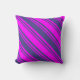 This throw pillow design features a pattern of stripes having colors like dark slate blue and fuchsia.