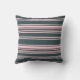 This throw pillow design features a dark slate gray and pink colored striped pattern.
