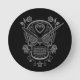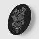 This stunning design features a Day of the Dead sugar skull on a pure black background. Four roses surround the skull with delicate vines flowing down to a five point star at the base of the pattern. A large heart sits in the middle of the forehead with fluid swirls on either side. This beautiful design is a stylish example of this Day of the Dead symbol.